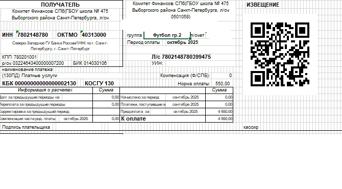 Пример квитанции для оплаты: